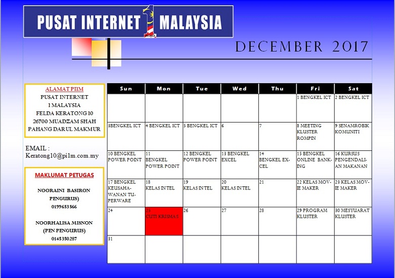 Jadual Aktiviti Disember 2017