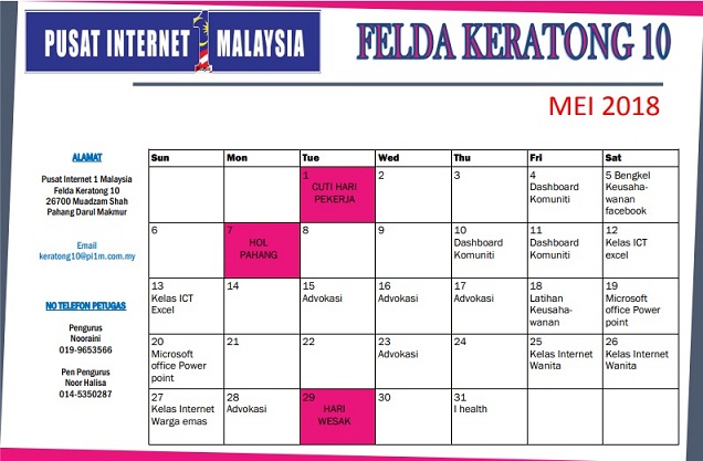 Jadual Aktiviti Mei 2018